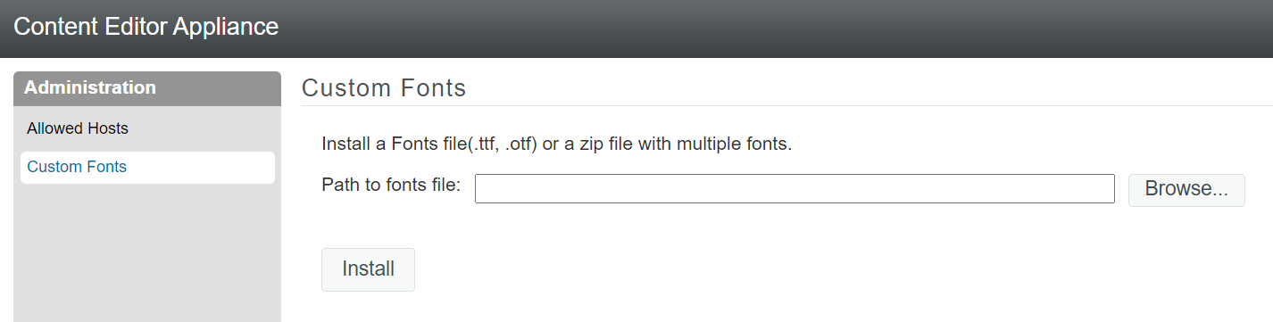 Path: Port 9443 Appliance Console > Configuration > Custom Fonts