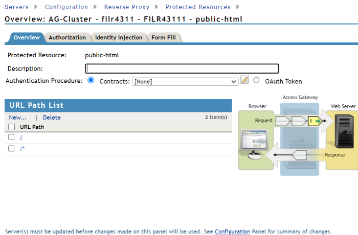 1. Click Access Gateways > Edit > [Name of Reverse Proxy] > [Name of Proxy Service] > Protected Resources.