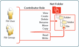 The file system and library rights required for each Net folder role are illustrated and explained in the following sections.