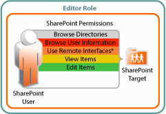 To perform contributor functions, users must have the Add Items and Delete Items permissions in addition to all of the permissions required for the Viewer and Editor roles.