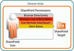 To view files and folders in SharePoint document libraries, SharePoint users must have the Browse Directories, Browse User Information, Use Remote Interfaces*, and View Items permissions in the document libraries.