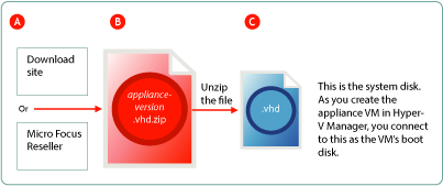 Figure 2-1 Downloading and Preparing OpenText Appliances for Hyper-V