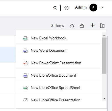 You can now edit the custom templates or create a new file within Filr. The Create New File option is available only for Advanced Filr Edition and Content Editor has to be enabled by the Administrator. In the My Files and NetFolders area, you can find this option at the root level and folder level, in the Shared With Me and Shared By Me area, you will find this option only at the folder level.