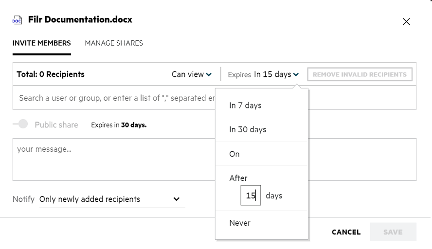 After - Set the expiry date of the share link relative to today’s date.