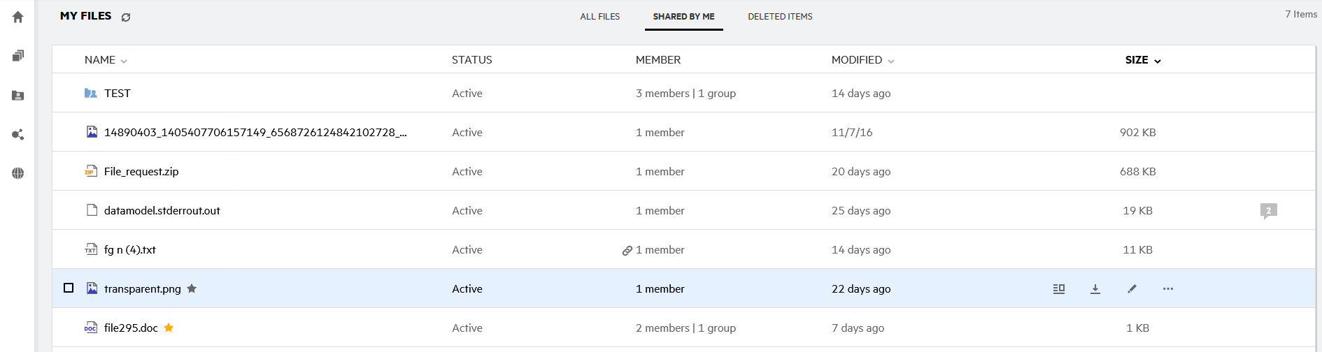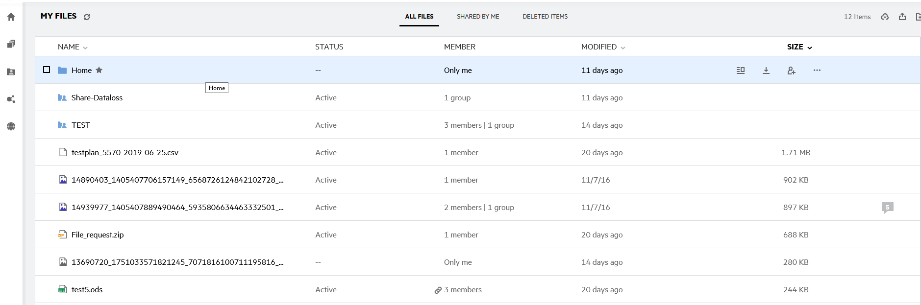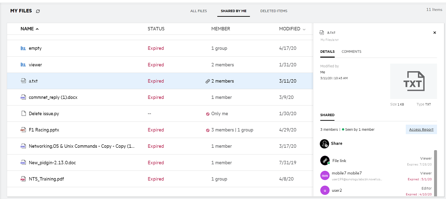 Member: Member of the file or folder. If shared, the number of users or groups.