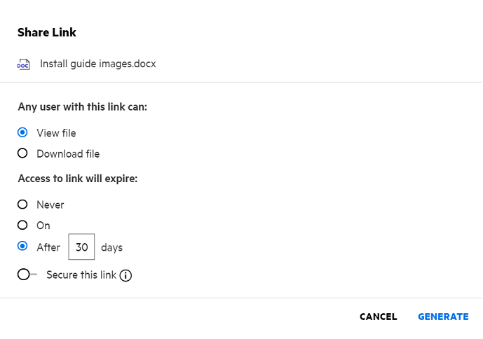 Click GENERATE to generate a unique share link.
