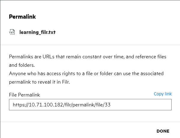 You can now share the link directly with anyone through email, text messages, social media, or any other collaboration forum. Any user clicking on the link will get direct access to the file. Based on the type of link, users will be able to view or download the file.
