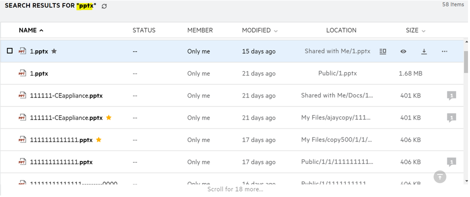 You can perform search operations on files and folders based on the access rights you have on each item. The Search string should contain a minimum of 3 characters for Filr to start searching the content.