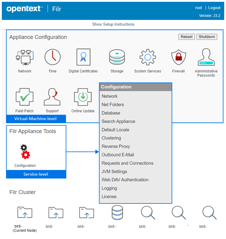 • You and those with the vaadmin or root user password use this to manage virtual-machine-level settings and Filr service configurations that affect an entire service and its interactions with other services.