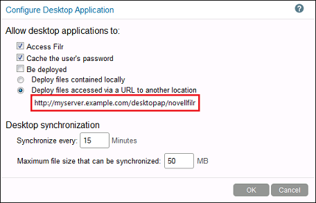 Although you can specify that the clients be downloaded from the local appliance, OpenText recommends hosting the Filr desktop applications on a separate web server, as documented in Section 7.0, Hosting Desktop Application Installation Files on a Separate Server.