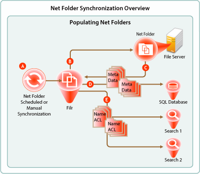 When a Net Folder Synchronization is triggered, the Filr appliance connects to the specified Net Folder location on the target file server.