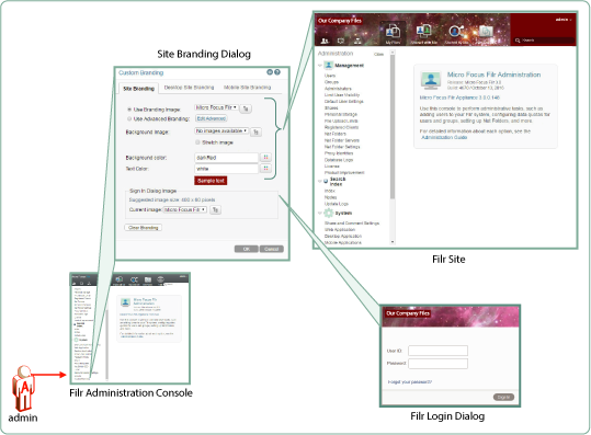 You can customize the colors and images displayed on the Filr site and the login dialog box, as illustrated in Figure 3-3. Customizations are retained when Filr is upgraded. For more information, see Branding the Web Client