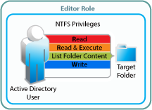 The file system and library rights required for each Net folder role are illustrated and explained in the following sections.