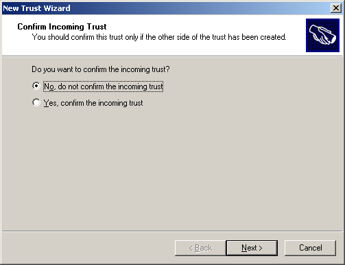 Click any option depending on your choice for confirming outgoing trust, then click Next.