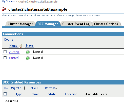 5. Return to the My Clusters page, select another peer cluster, then go to its BCC Manager tab.