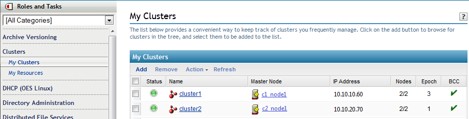 6. (Optional) Use iManager to verify that the peer clusters are communicating their status.