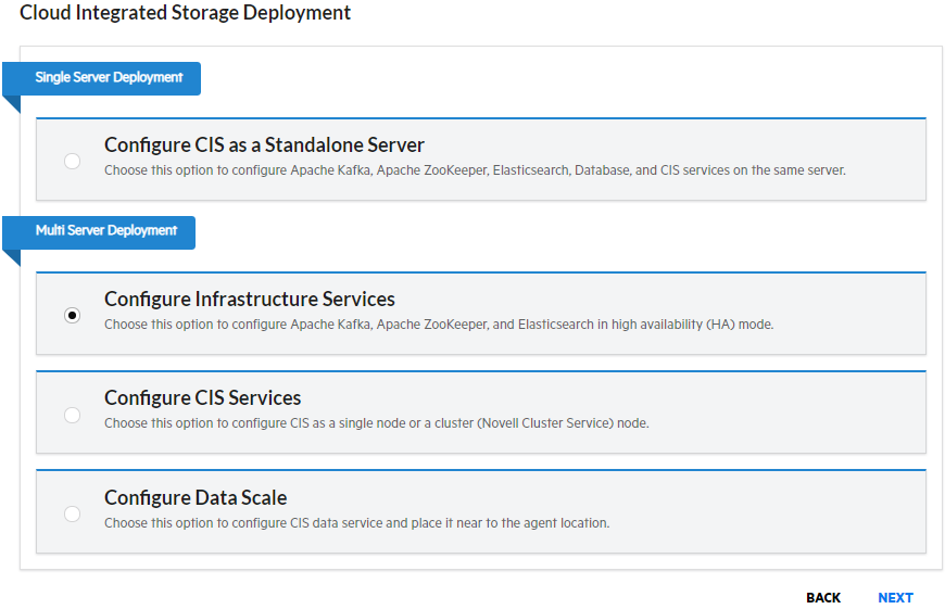 Choose this option to configure Apache Kafka, Apache ZooKeeper, Elasticsearch, database and CIS services on the same server.