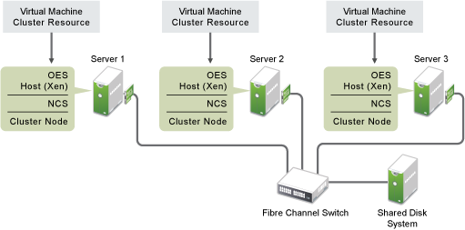 Figure 14-1 depicts how this setup might look. OES Cluster Services (NCS) is installed and running on the virtual machine (VM) host server.