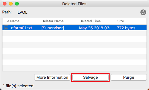 NOTE:To salvage the deleted files from a sub-directory, ensure to salvage the sub-directory and then salvage the files in the sub-directory.