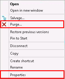 1. Right-click a Windows mapped network drive or folder, then click Purge or Properties > Purge.