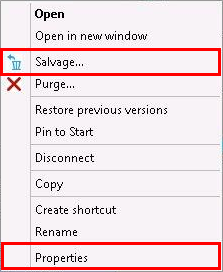 1. Right-click a Windows mapped network drive or folder, then click Salvage or Properties > Salvage.