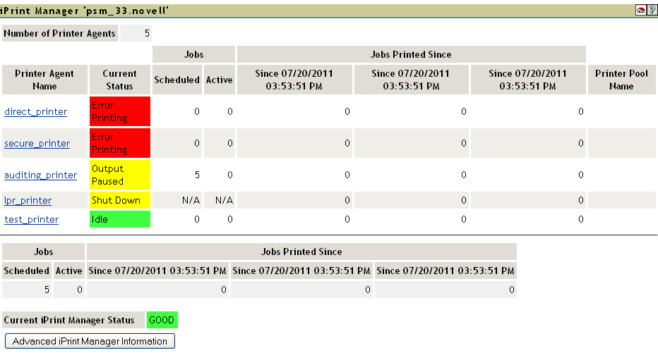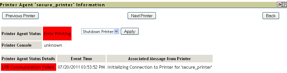 Reviewing the Printer Agent Status Details, you determine that the iPrint Manager and the printer are not communicating.