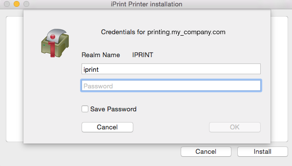 If you are installing a secure printer, the iPrint Printer Installation dialog box is displayed once again prompting for your user credentials.