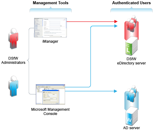 • Network administrators can use Microsoft Management Console (MMC) to administer users and groups within the DSfW domain, including their access rights to Samba-enabled storage on OES servers.