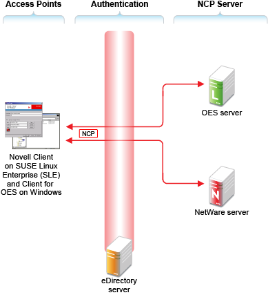All file service access is controlled by LDAP-based authentication through the eDirectory server. |