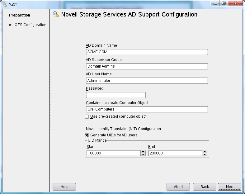 IMPORTANT:When upgrading the OES server, if NSS AD pattern is selected, then any misconfiguration in joining the domain can result in upgrade failure. Hence, it is recommended not to install NSS AD Support as part of the upgrade process.