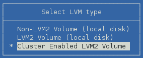 Select Cluster Enabled LVM2 Volume, then press Enter.