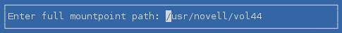 The default path is /usr/novell/<lx_volume_name>, such as /usr/novell/vol44. If NCP is enabled, the specified path is also used as the mount point path for the NCP volume. |