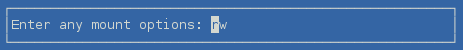 Press Enter to accept the default read and write options (rw).