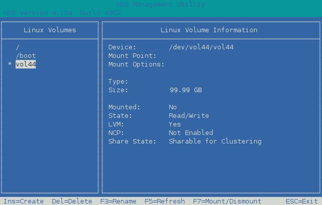 In the NSSMU main menu, select Linux Volumes, then press Enter.