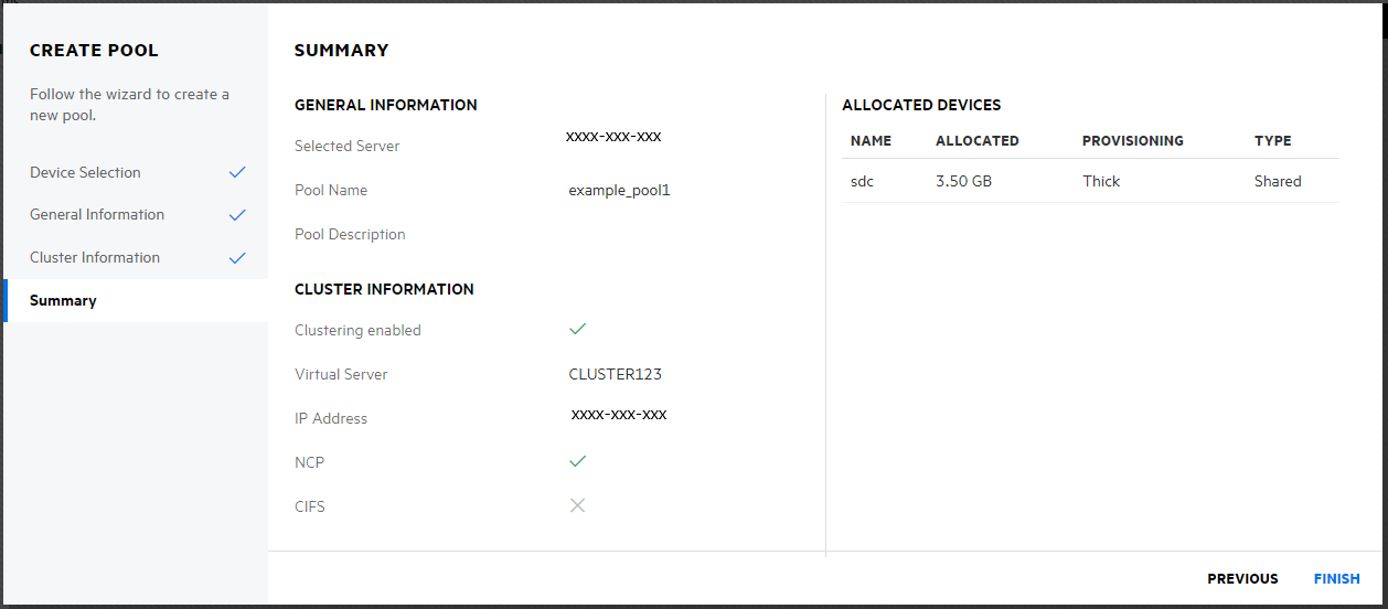 7. Review the pool details, and click FINISH to create the pool.