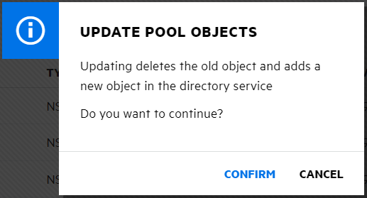 4. Click CONFIRM to update the pool objects for the selected pool.
