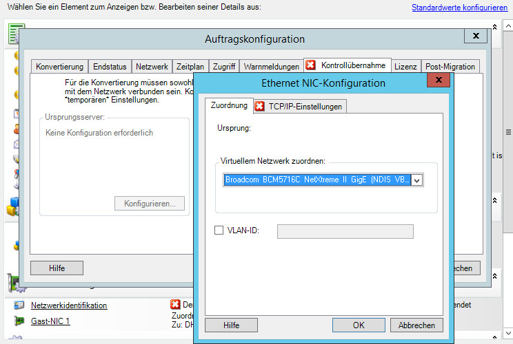 Führen Sie im Migrationsauftragsfenster unter „Netzwerkkonfiguration“ eines der folgenden Verfahren aus: