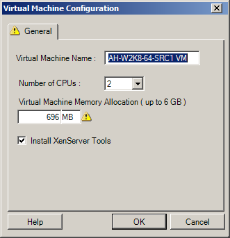 2. Para ver las opciones de configuración de la máquina virtual de destino específicas del host del recuadro de diálogo de configuración de la máquina virtual, consulte Configuración de la máquina virtual de destino: Citrix XenServer.
