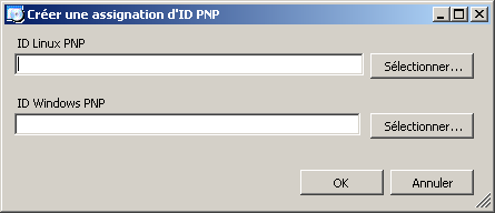 Cliquez sur Sélectionner en regard du champ d'ID PnP Linux pour ouvrir la boîte de dialogue de sélection de l'ID PnP Linux.