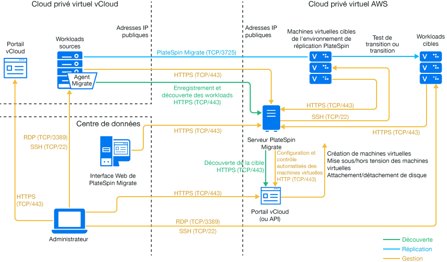L'agent Migrate n'est pas requis puisqu'un VPN est disponible, mais il fonctionnerait également. Pour connaître les exigences en matière de pare-feu et de ports réseau pour l'enregistrement, reportez-vous à la section Section 2.6.2, Conditions requises pour l'enregistrement de workloads.