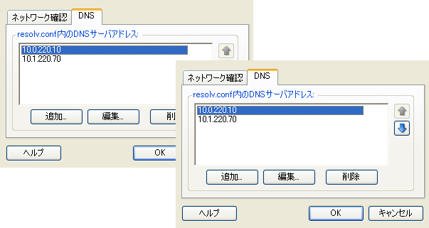 DNSタブ: 追加編集、および削除ボタンを使用して、新しい仮想マシンのDNSサーバエントリを管理します。