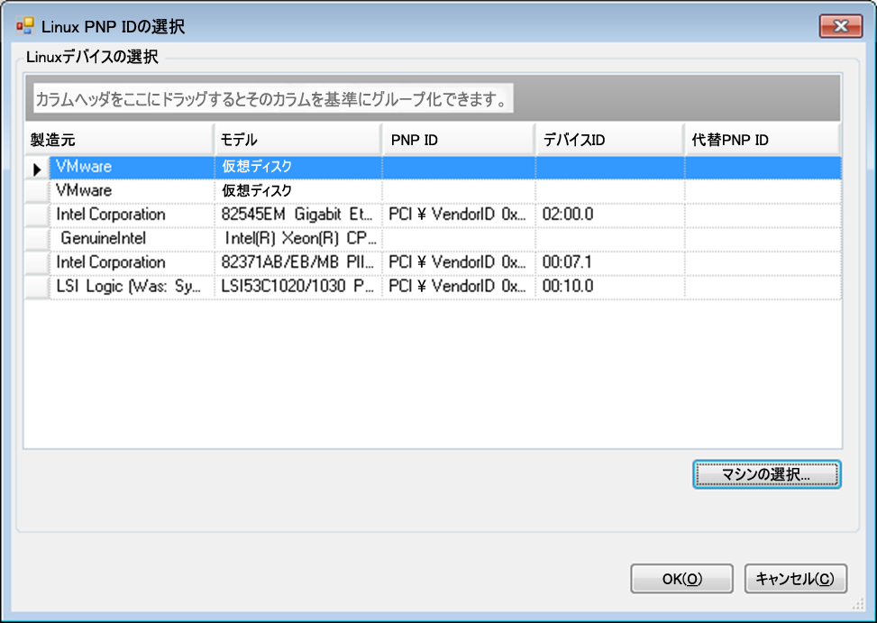 リストでいずれかのデバイスを強調表示し、選択をクリックして、[Linux PnP IDの選択]ダイアログボックスのリストに入力します。