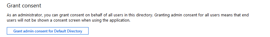 7. [Azure Global Administrator rights for the Default Directory are required for this step.] Grant admin consent for the Default Directory for the requested permissions.