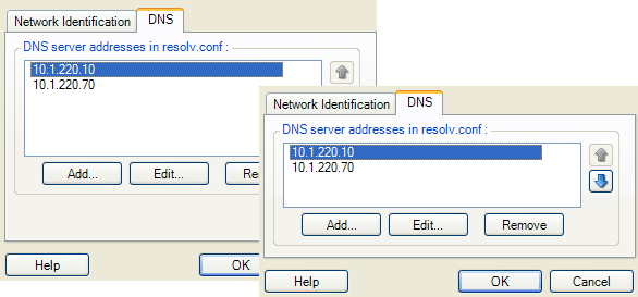 DNS tab: Use the Add, Edit, and Remove buttons to manage DNS server entries for the new virtual machine.