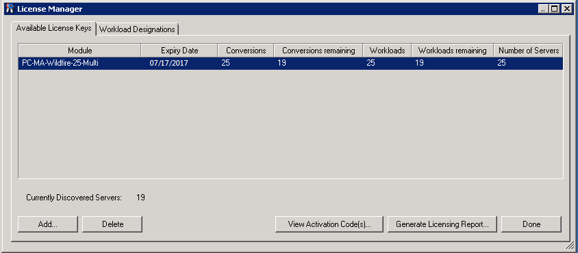 No Cliente do PlateSpin Migrate, clique em Tools > License Manager > Available License Keys.