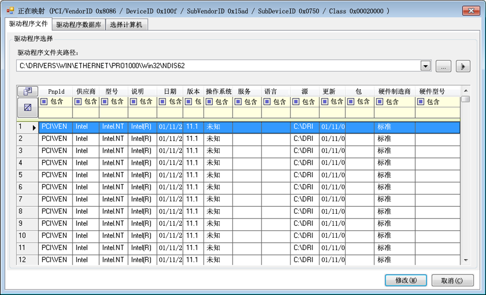 在驱动程序数据库选项卡下,浏览并选择现有驱动程序数据库,然后选择正确的 PnP ID,再选择修改。