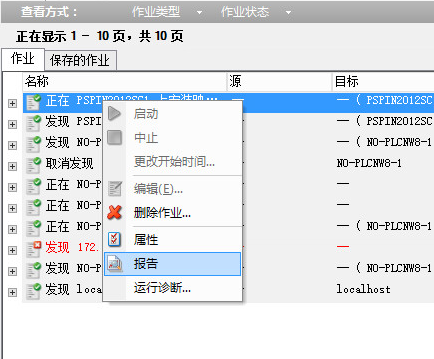 2. 右键单击该作业,然后选择报告