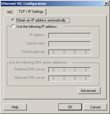Connect using: If multiple network adapters are present, select the adapter that can communicate with both the PlateSpin Server and the target. Duplex setting: Use the drop-down list to select network card duplexing. It must match the duplex setting for the switch to which the network interface is connected. When the source is connected to switch ports that are set to 100 Mbps full duplex and cannot be changed to auto negotiation, select Force NIC to Full Duplex. TCP/IP Settings tab: Click the tab to access TCP/IP and advanced network settings. See TCP/IP and Advanced Network Settings. |