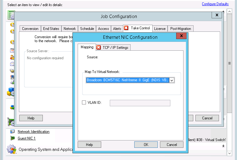In the Network Configuration section of the Migration Job window, do one of the following:.