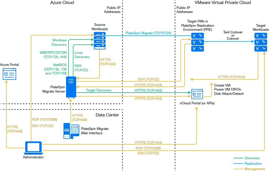 PlateSpin Migrate supports migration of workloads from Microsoft Azure to VMware vCloud Director.